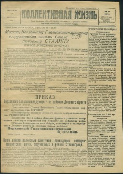 1943, № 16 (3973) (5 февраля). - 2 полосы : фото.