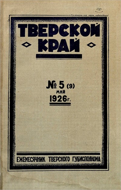 Тверской край : ежемесячный журнал Тверского губернского исполнительного комитета, № 5 (9). Май 1926 г. / Тверской губернский исполнительный комитет. - Тверь : Тверская ОУНБ, 2026- . – Текст (визуальный) : электронный. - Загл. с экрана.