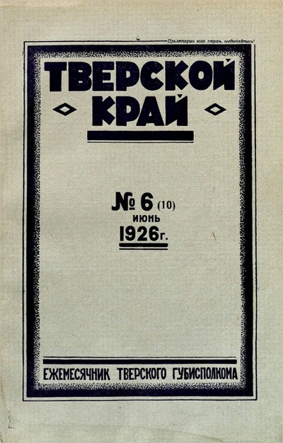 Тверской край : ежемесячный журнал Тверского губернского исполнительного комитета, № 6 (10). Июнь 1926 г. / Тверской губернский исполнительный комитет. - Тверь : Тверская ОУНБ, 2026- . – Текст (визуальный) : электронный. - Загл. с экрана.