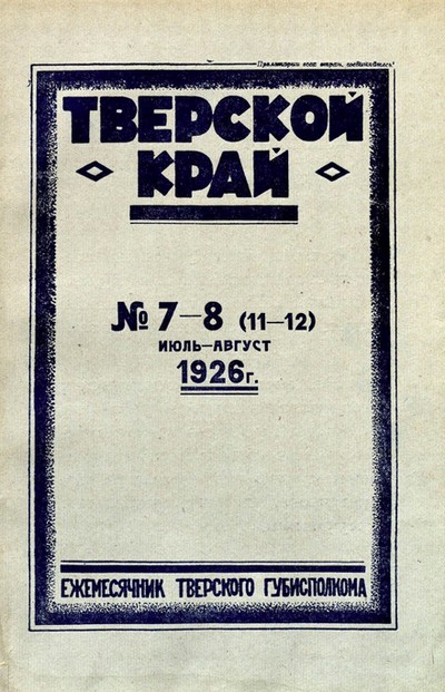 Тверской край : ежемесячный журнал Тверского губернского исполнительного комитета, № 7-8 (11-12). Июль - Август 1926 г. / Тверской губернский исполнительный комитет. - Тверь : Тверская ОУНБ, 2026- . – Текст (визуальный) : электронный. - Загл. с экрана.