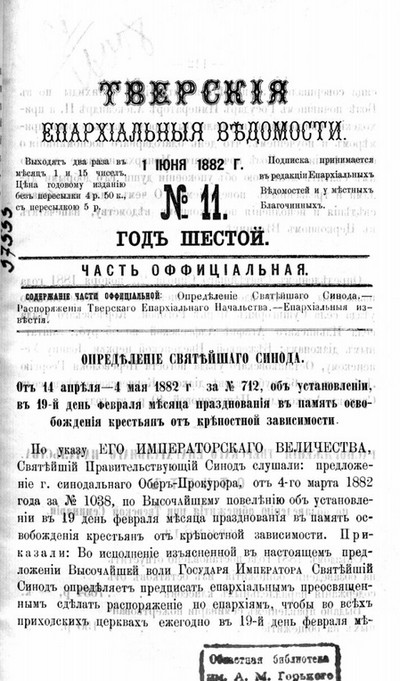 Всем, кто изучает тверскую историю и заинтересован в распространении краеведческих знаний, предлагаем познакомиться с ежегодным информационным справочником энциклопедического типа "Тверские памятные даты". Издание выпускает Тверская областная библиотека им. А.М. Горького и Государственный архив Тверской области с 1974 года.