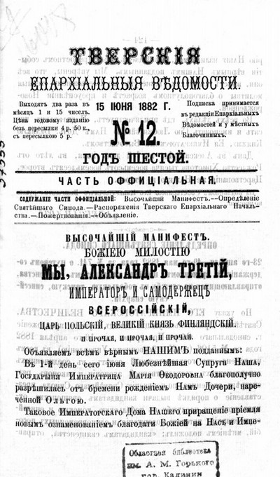 Тверской музей и его приобретения в 1889 году : (читано в заседании Твер. Учен. Арх. Ком.). - Тверь : Типография Губернского Правления, 1891. - 61 с. ; 25 см. - Перепечатано из №№ 19, 21, 22, 24, 25, 26, 27, 28 и 29 "Тверских губернских ведомостей" 1891 г., по распоряжению Тверской уч. архивной комиссии.