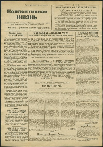 Верхневолжская правда : газета / орган Кировского РК ВКП(б) и районного Советов депутатов трудящихся Калининской области ; [и.о. ответственного редактора И. Е. Кутилин]. – Селижарово : Типография издательства газеты "Верхневолжская правда", 1930 – . – Выходит 2 раза в неделю. – 3240 экз. : 0.15.